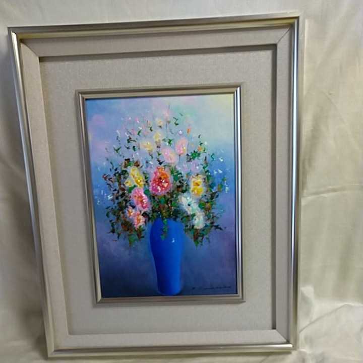 - No233 F4号 油絵 古川明雄 野の花 僅かに経年変化 額に小キズ 擦れあり 前面ガラス入り