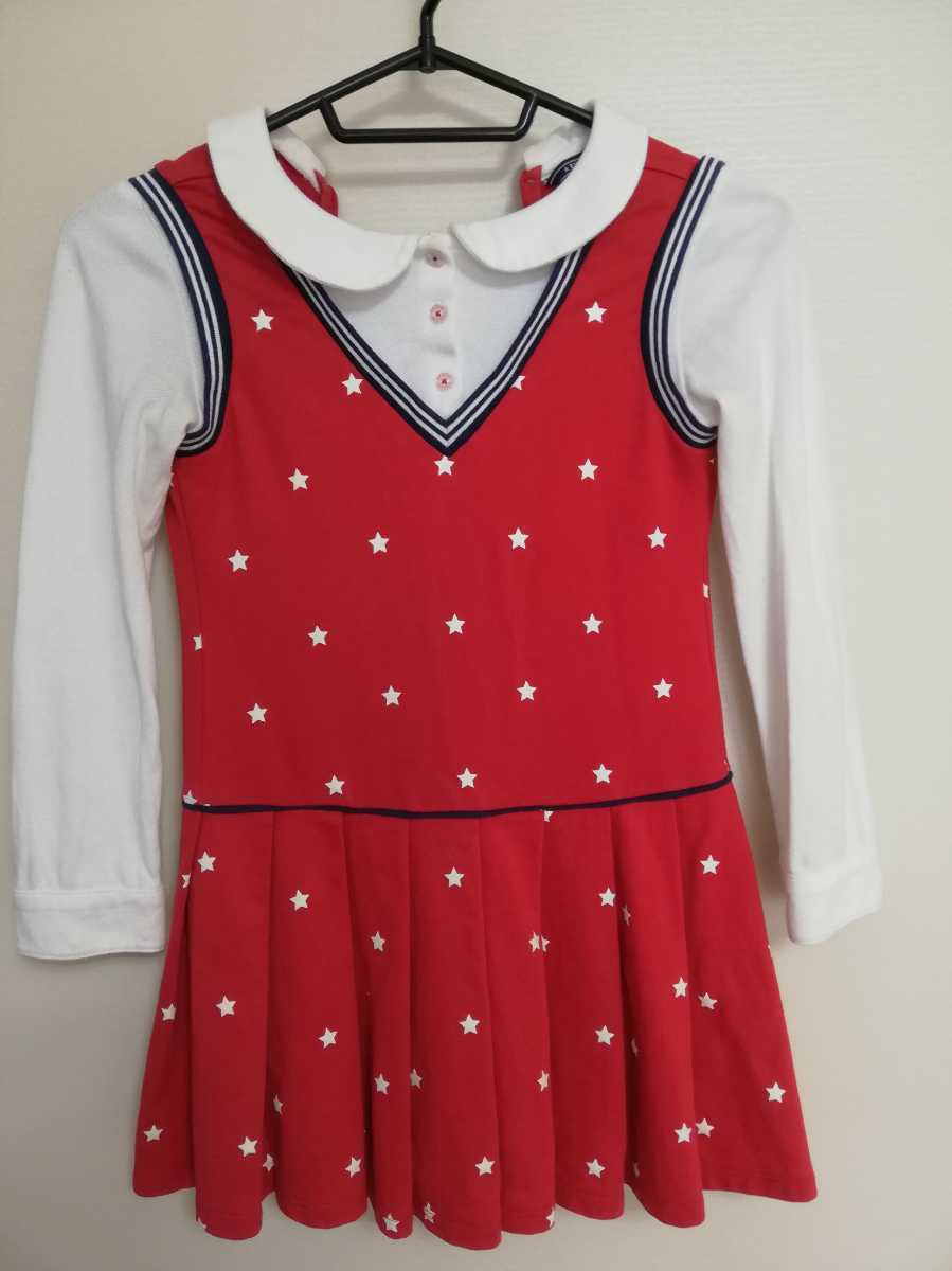 > 長袖ワンピース 130 チアガール風 やや厚手 春秋に適宜するしっかりとした生地 綿100% 数回のみ着用良品!!