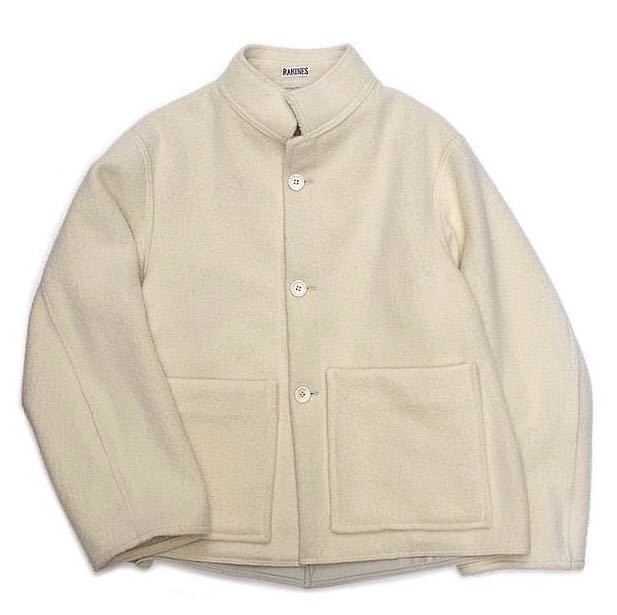 > 新品 RAKINES Fleece melton-Naval service blouson ラキネス フリース メルトン ブルゾン Wool Ecru エクリュ sacai outil kolor HYKE