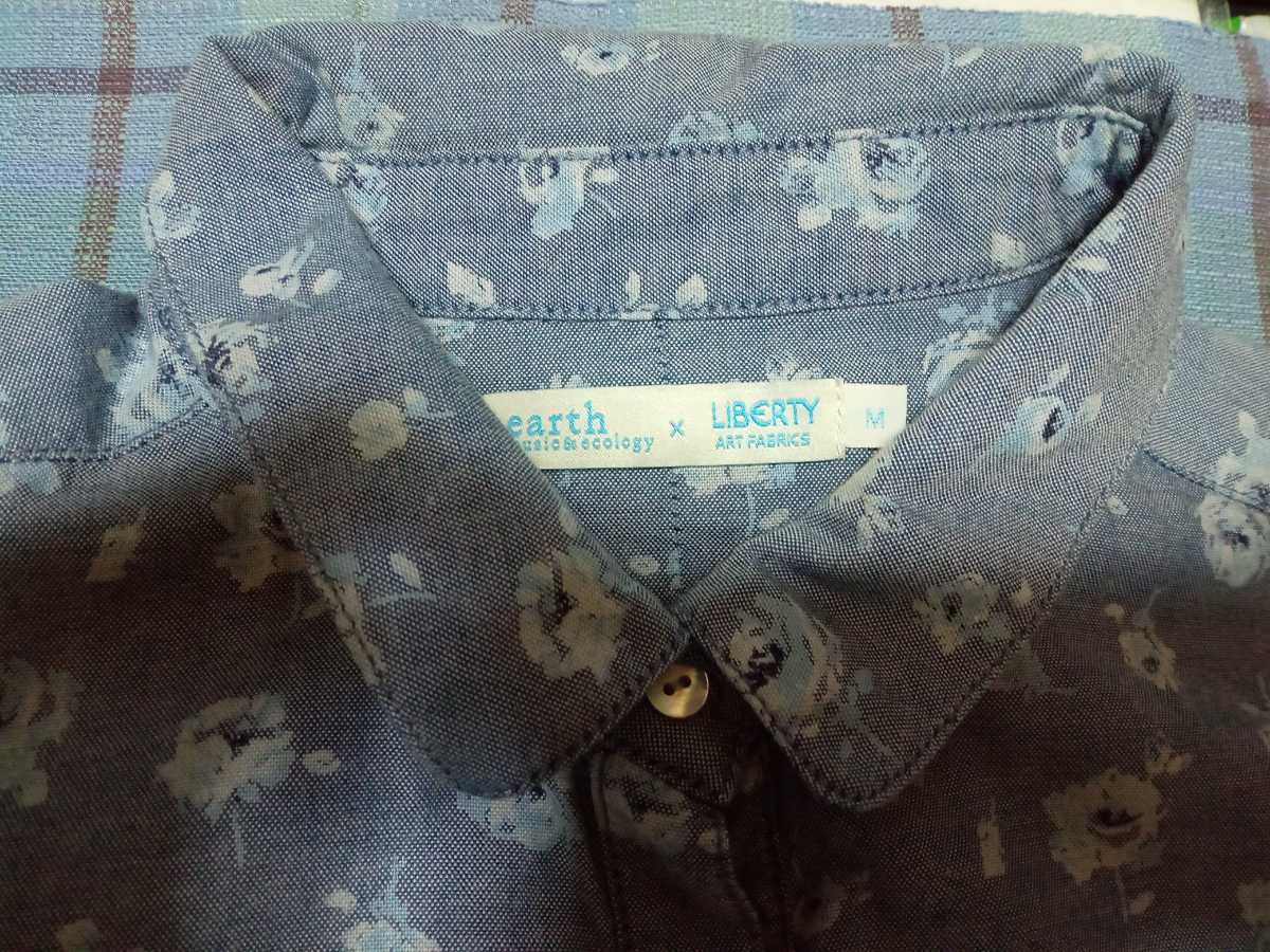 > earth×LIBERTY 花柄 デニム風ロングシャツ ワンピ(earth music&ecology)