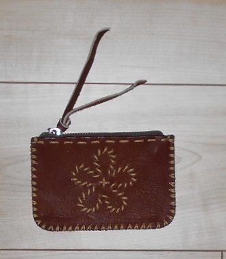 - レザー コインケース 革 明るいブラウン ハーフ 財布 小物入れ 花刺繍 フリンジ A 茶色 フラワーステッチ バンコク購入 男女兼用