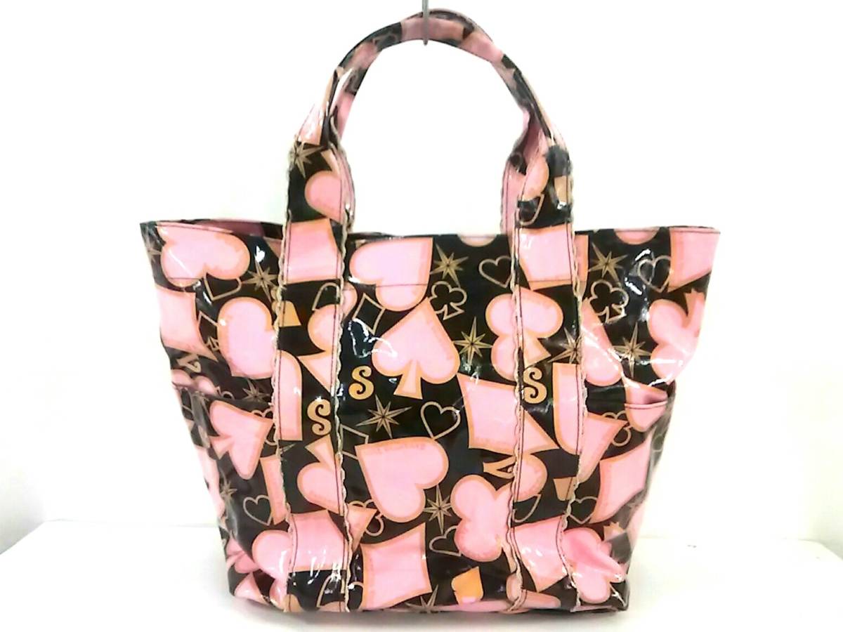 > $ 美品 $ レア!◆ Samantha Vega ◆ サマンサベガ ◆ コーティング ◆ 大きめ ハンドバッグ ◆ 黒 ブラック系 × ピンク系 ◆ 送料無料!