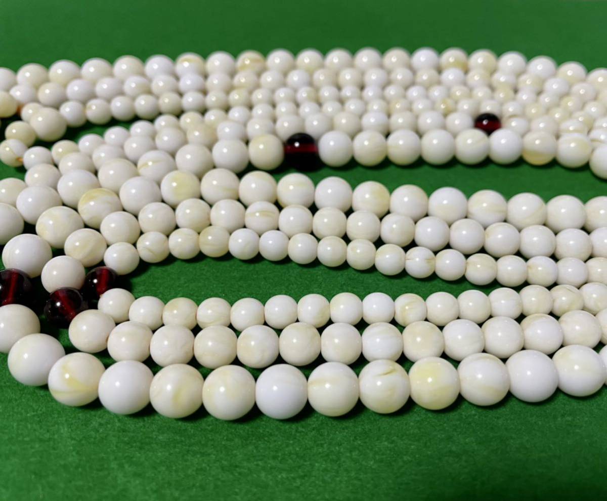 - 数珠 念珠 合成琥珀ブレスレット 8mm アンバー 蜜蝋 ホワイト 108珠 アクセサリー 小物ファッション 男女兼用 御守り 魔除 ラッキー 幸運