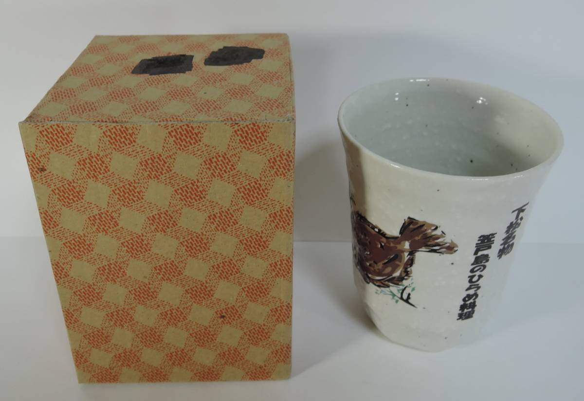 - ☆W09■下松名物 笠戸島のひらめ料理 旅のことなら 下松駅 湯飲み■山口県 未使用