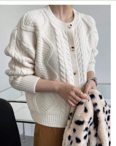 - 777 ニットカーディガン◇ladies レディースきれいめ ◇厚手 ケーブル編み アイボリー