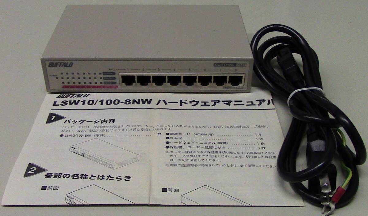 - 8ポートスイッチングハブ LSW10/100-8NW (BUFFALO製)