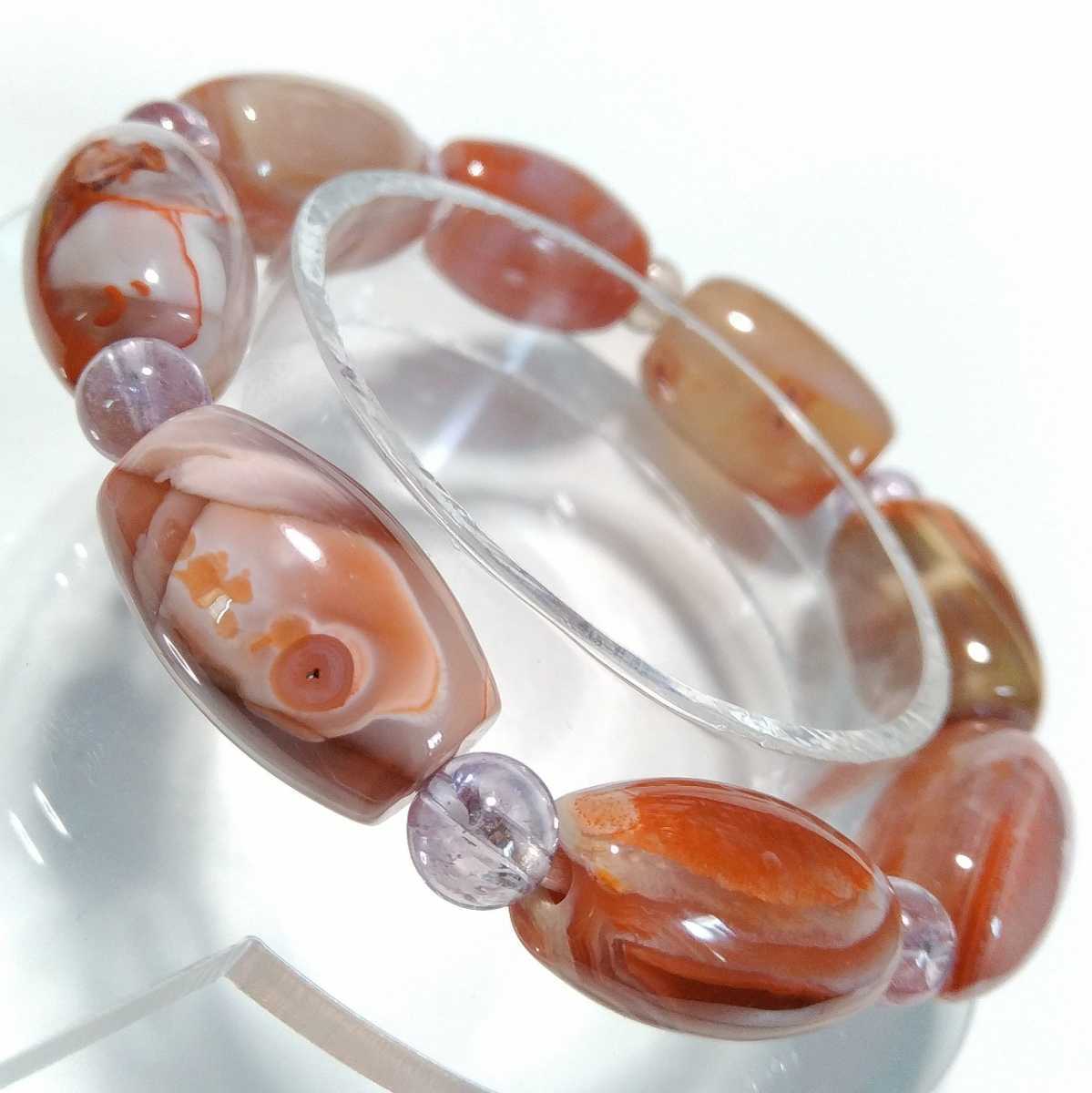 - 南紅瑪瑙 南紅縞瑪瑙 ナンホーン瑪瑙 ナンホン瑪瑙 天珠 デザインブレスレット ブレスレット 天然石 パワーストーン