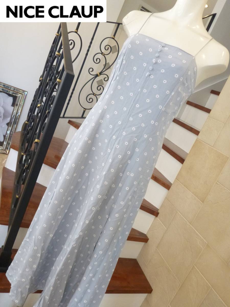 - 美品 NICE CLAUP ナイスクラップ ★水色×花柄 ロングワンピース F M相当