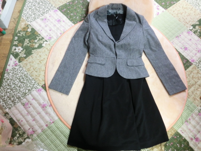 - ■美品:グレー色ジャケット+ブラックワンピース小さ目Mサイズ Tm783