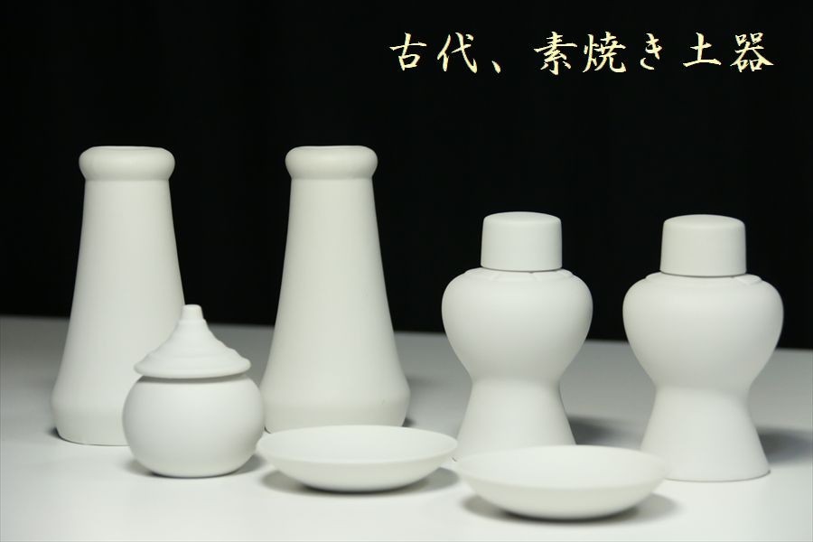 - 国産 素焼 神具セット 土器セット 高級神具7点セット■ 素焼き 無釉 古代式 ■ 大 型の神棚に