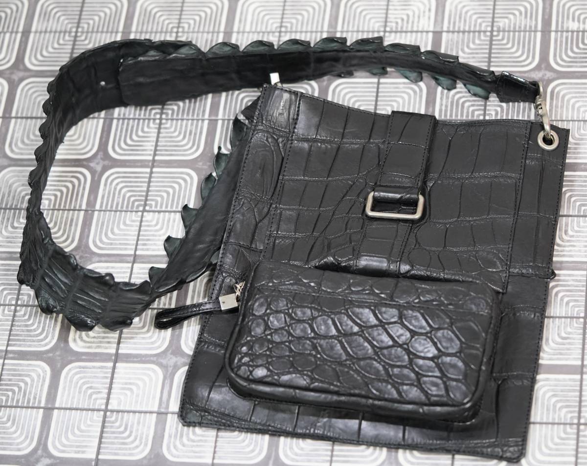 - クロコダイルショルダーバッグ メンズ 斜め掛け テールショルダーストラップ クロコ ワニ 希少 最高級イタリア製