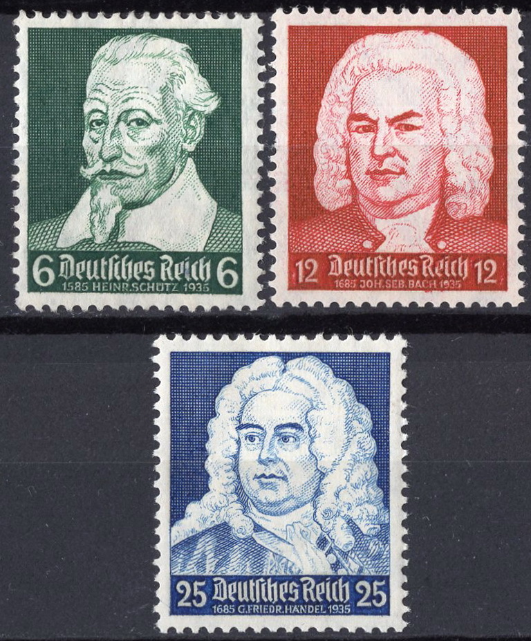 - ★1935年 ドイツ第三帝国 - 「作曲家ハインリヒ・シュッツ,バッハ,ヘンデル生誕記念」3種完 未使用(NH.LH)(SC#456-458)★TJ-2377