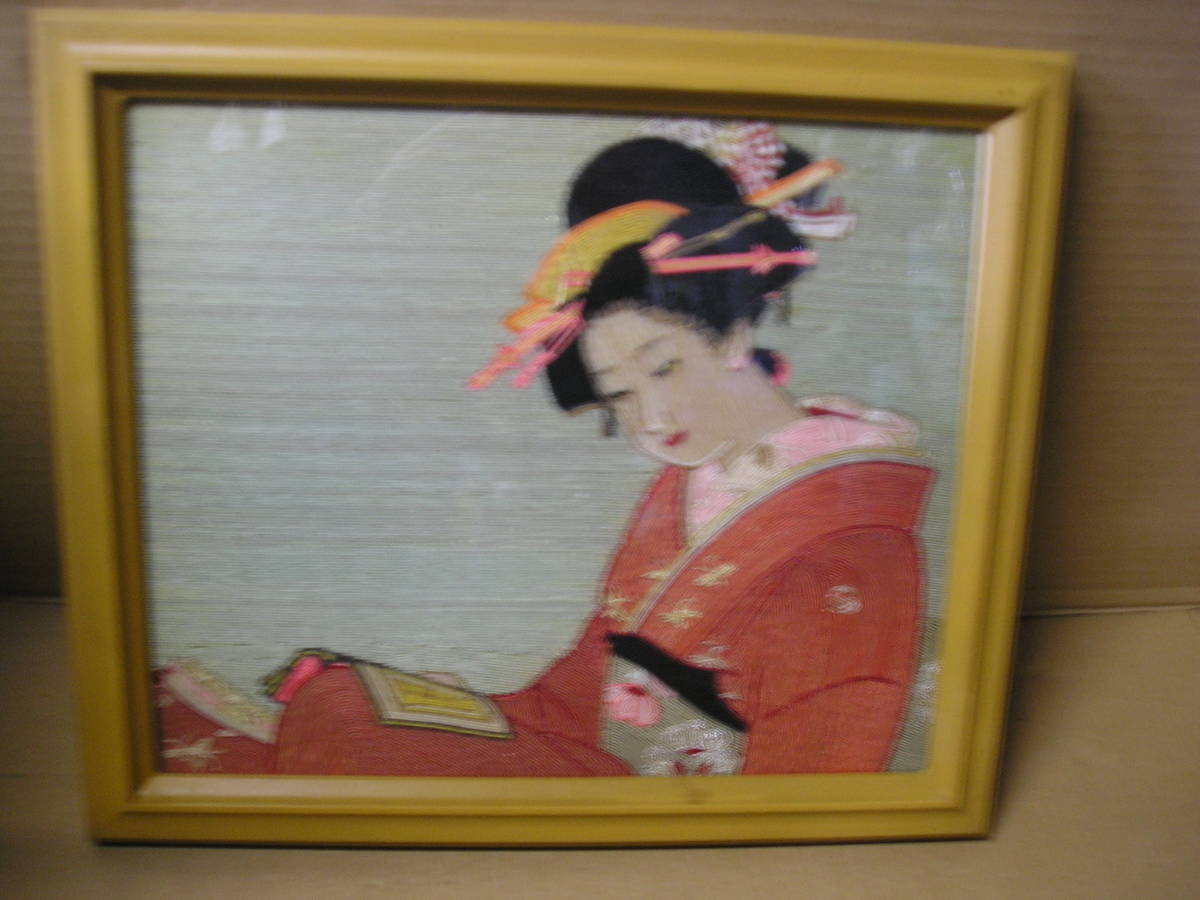 - 昭和レトロ 刺繍 ◆日本美人画 ◆幅41 縦35 【保管 102】