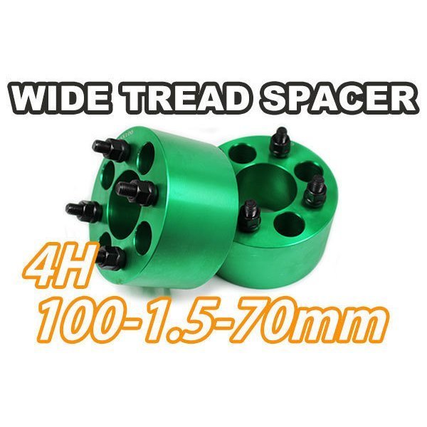 - ワイドトレッドスペーサー 4H 2枚組 PCD100-1.5 70mm 緑 ワイトレ