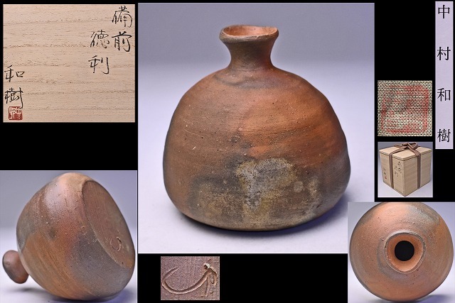 - 中村和樹 ★ 備前 徳利 ★ 共箱 共布 栞 ★ 父: 中村真 / 祖父 : 中村六郎 ★ 安定感のある中村家伝統の造形 ★ 酒器 ★