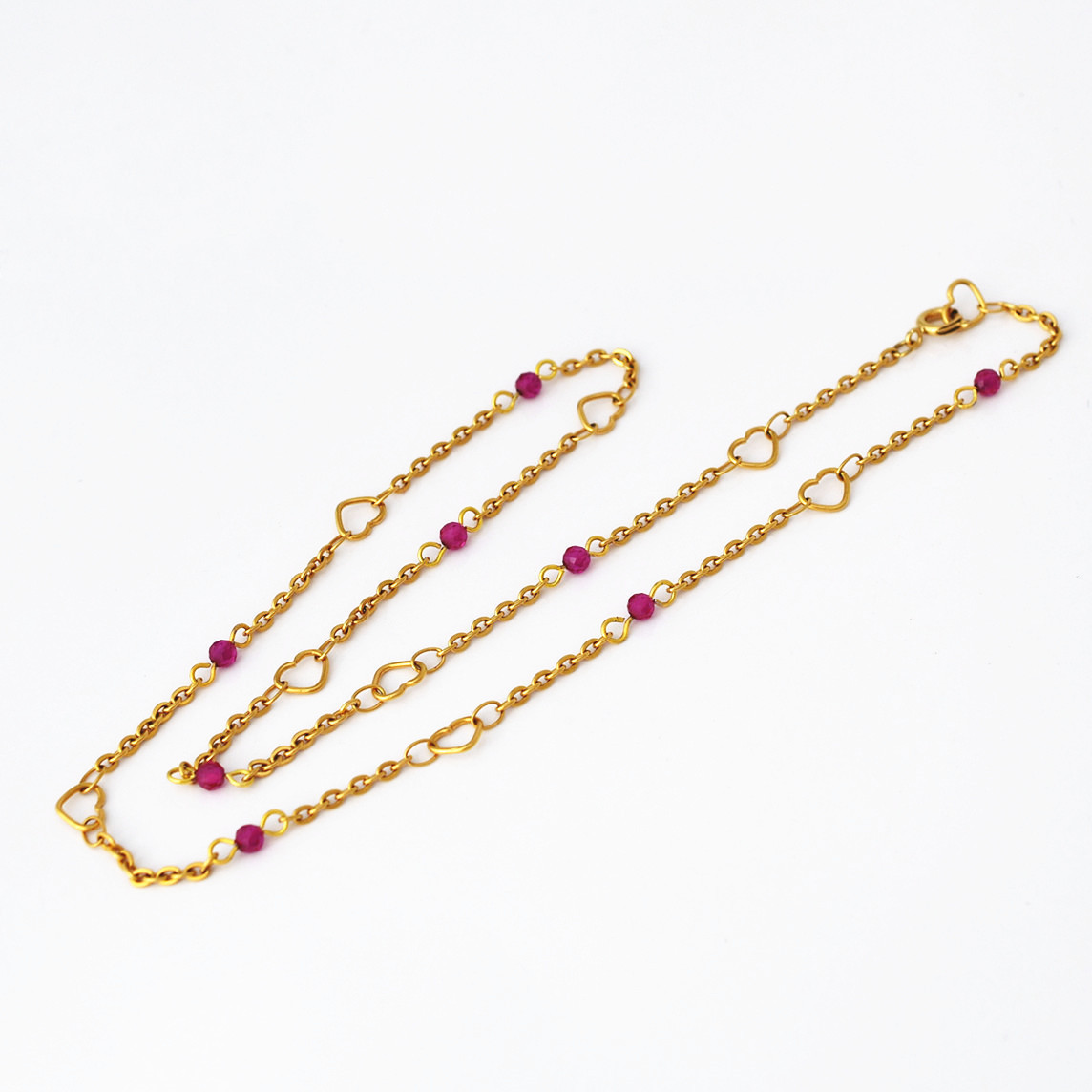 - 天然石 レッドスピネル ハート ステンレスチェーン ネックレス