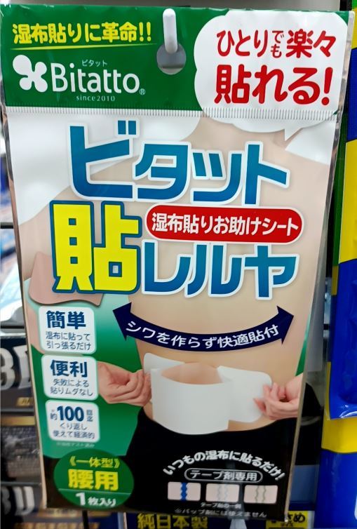 - ビタット Bitatto 貼レルヤ 一体型 湿布貼りお助けシート 腰用 補助グッズ 一人でも楽に湿布が貼れる テープ剤専用 約100回分 新品 1枚入