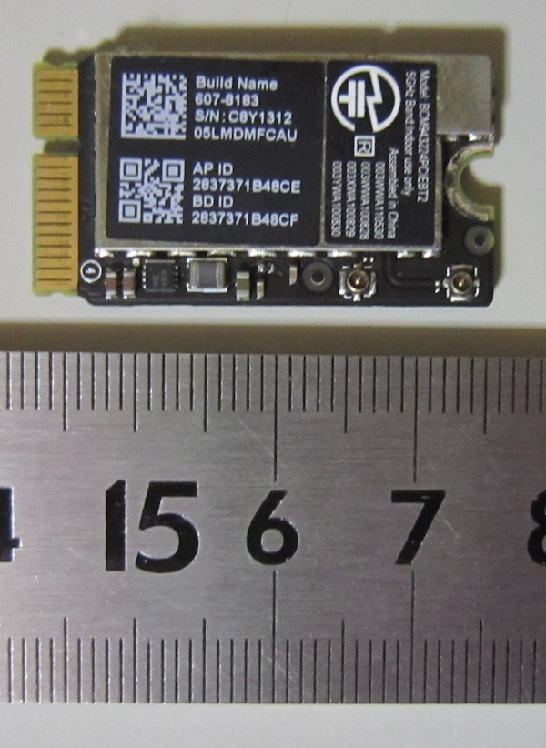 > 1464 Apple純正 無線LANカード BCM943224PCIEBT2 MacBookAir 13inch Mid2011 Corei5 1.7GHz MC965J/A 内蔵品