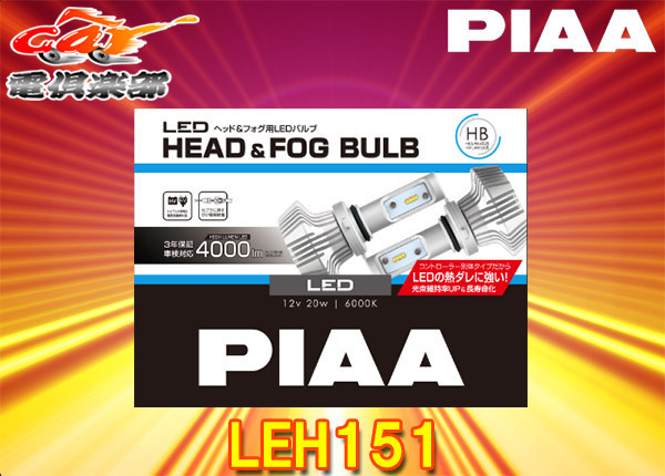 - 【取寄商品】PIAAピアLEH151ヘッド&フォグライト用LEDバルブHB3/HB4/HIR1/HIR2適合6000Kコストパフォーマンスモデル3年保証・車検対応