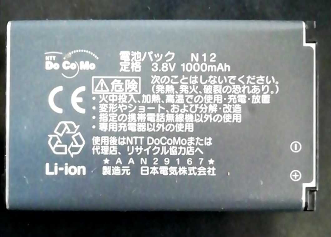 - 【中古】NTTドコモN12純正電池パックバッテリー【充電確認済】対応機種(参考)N600i