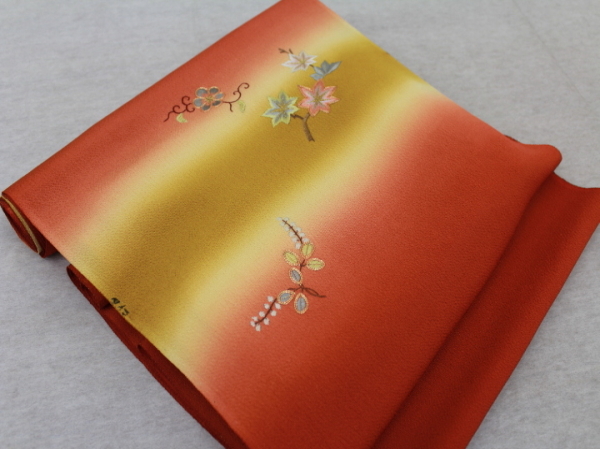 - 楽布特選 93687 lwt 京都「吉全」製 縮緬手刺繍九寸名古屋帯 新品反物