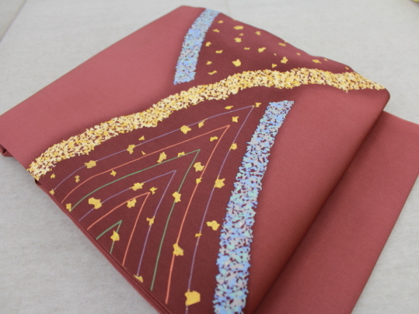 > 楽布特選 94168 蒔き糊友禅塩瀬名古屋帯 未使用仕立上がり品 lwty