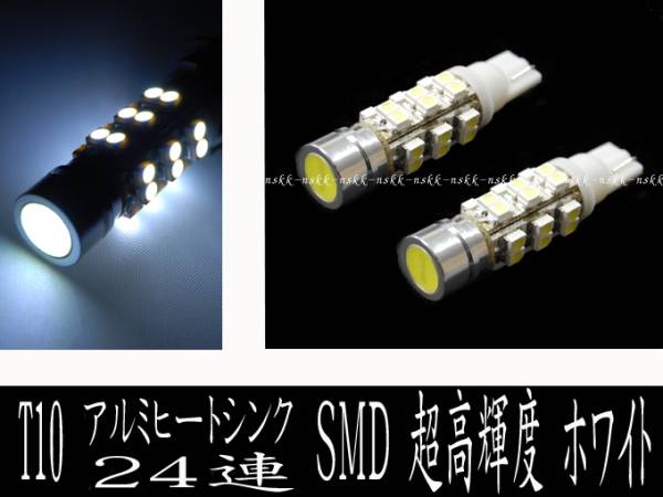 - 最強SMD T10アルミヒートシンク+24連バルブ2個セット ホワイト