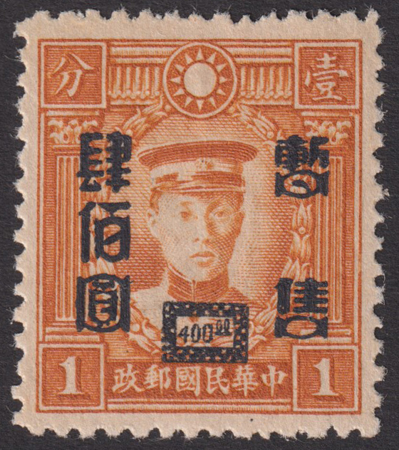 - 中国占領地切手 華南 汕頭加刷 香港版烈士票 400円/1分 未使用 NH JPS:9C59 0621
