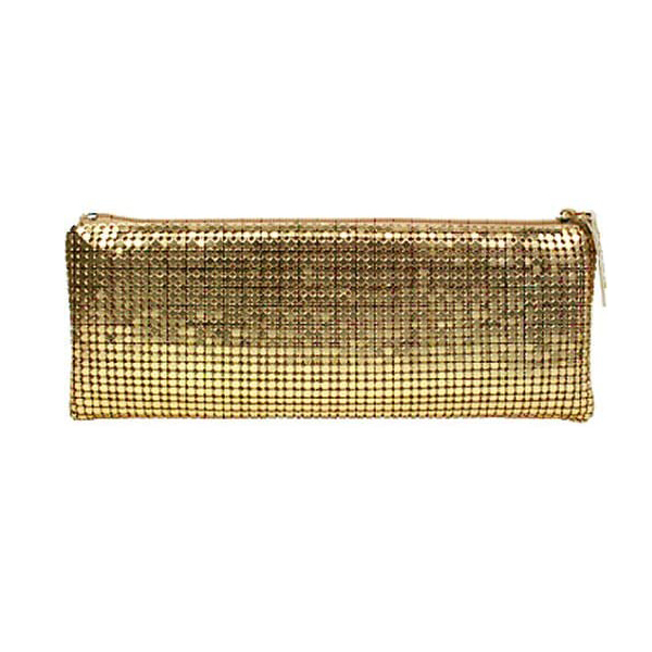 - 送料無料メール便 フラットペンケース 昭和レトロ メタルメッシュ 3-12542-41 ゴールド/8595x1本
