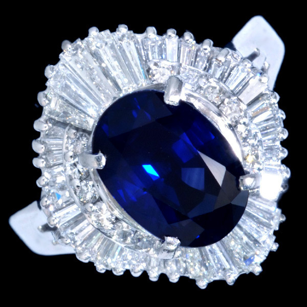 - B1603 逸品サファイア2.95ct 天然絶品ダイヤモンド1.02ct 最高級Pt900無垢リング サイズ16 重さ7.6g 縦幅17.6mm
