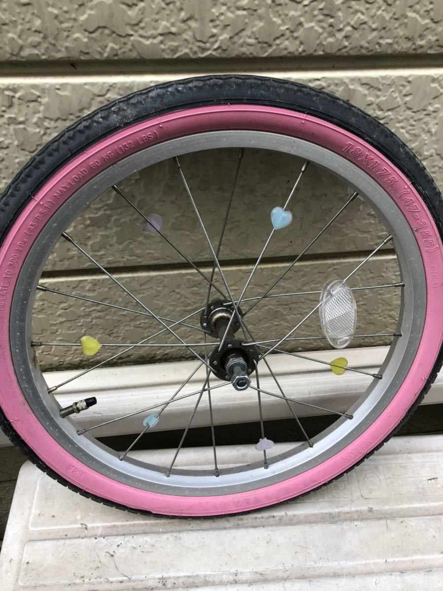 - ②18×1.75 アルミホイール フロントホイール 前輪 18インチ タイヤ付き 中古品 子供車 小径車 折り畳み車