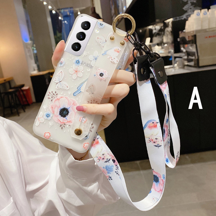 - Samsung Galaxy S21+ケース S21 Plusカバー 6.7インチ SCG10 保護カバー 背面ケース TPUソフトケース 花 長短ストラップ付き おしゃれ 人気