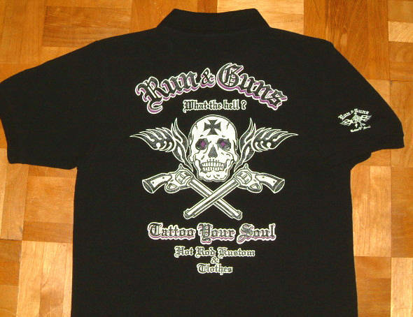 > 新品 Run&Guns バイカー仕様 100%コットン 肉厚 カノコ生地 スカル柄 半袖 ポロシャツ (Sサイズ/黒) 鹿の子 ホットロッド パワーロッド66