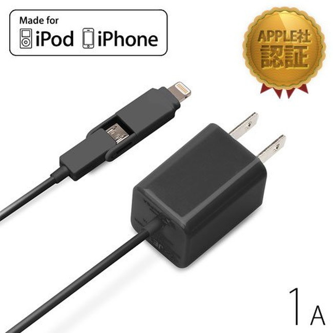 - 【在庫処分】 iCharger Lightning+micro USBツインコネクタ AC充電器 1A ブラック PG-TAC10A01BK PG-TAC10A01BK