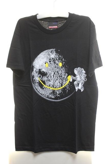 - 【L】月にスマイルマーク プリントTシャツ 黒【c-78】