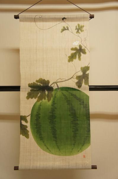 - 新品『羅工房』手描き大王西瓜模様生平麻タペストリーE9785