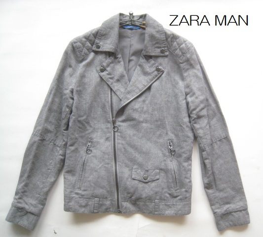 - 美品!!ザラ マン ZARA MAN*春夏モデル 麻55% リネンコットンライダースジャケット S グレー 灰色