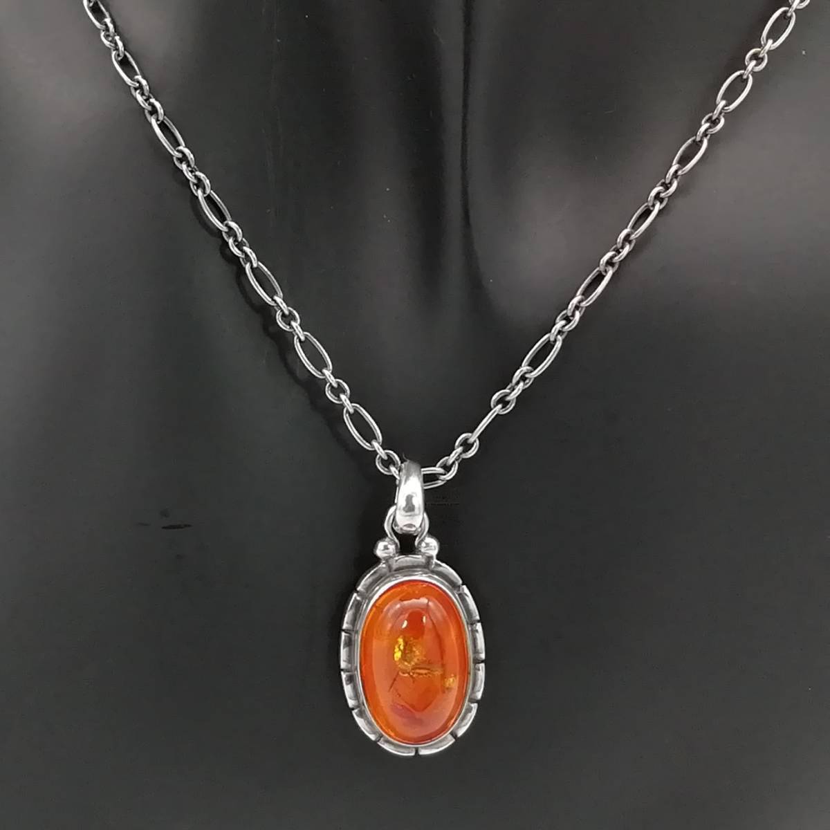 - 極希少 美品 Georg Jensen ジョージジェンセン 植物入り 琥珀 イヤー ペンダント ネックレス SV925 アンバー 2001年 AA65