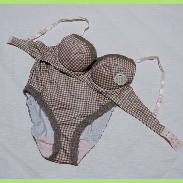 - 未使用 D75L 産前授乳 ワンタッチオープン チェック ブラ&ショーツ マタニティ ピンク