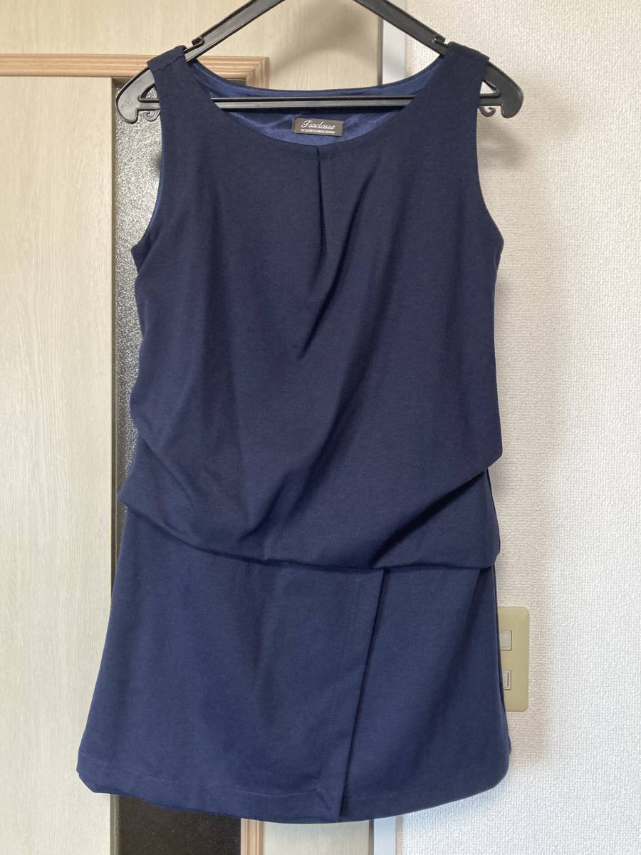 > ★チュニック ワンピース ジャンパースカート 切り替え 重ね着 トップス 紺色 ネイビー Mサイズ レディース ティアクラッセ Tiaclasse