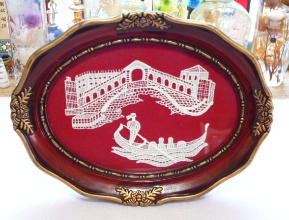 - ζБ ブラーノレース 壁掛け 壁飾り ζБ スタンド Burano 飾り 置物 レース 額 ヴェネチアンレース ゴンドラ イタリア ベネチア 刺繍