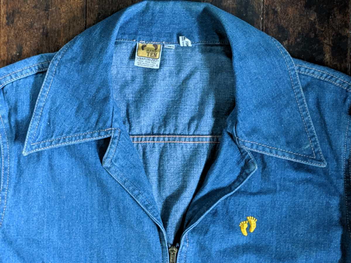 > ワーク ★ ハンテン デニム ジャケット ジップ アタリ ビンテージ hangten ライトニングボルト オーシャンパシフィック オールド サーフ