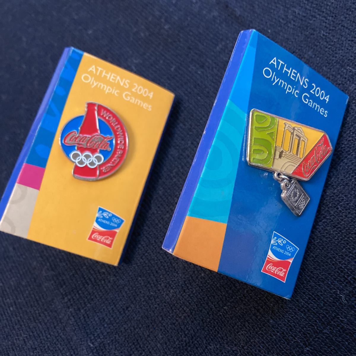 - コカコーラ 2004 アテネオリンピック ピンバッジ 2種 2個 コークウイズアテネ チャーム付き 2 24 台紙付き 送料無料 ノベルティ