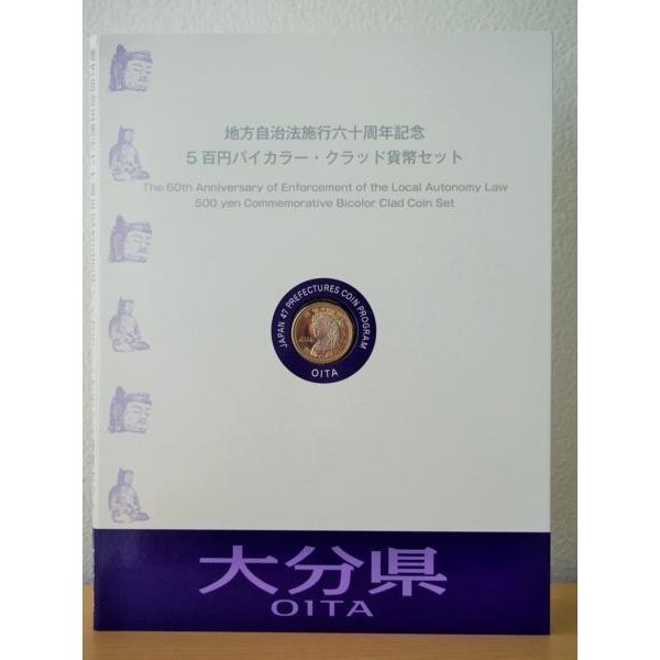 > 874 地方自治法施行六十周年記念 5百円バイカラー・クラッド貨幣セット 大分県 記念硬貨 切手付き 日本 造幣局 送料無料