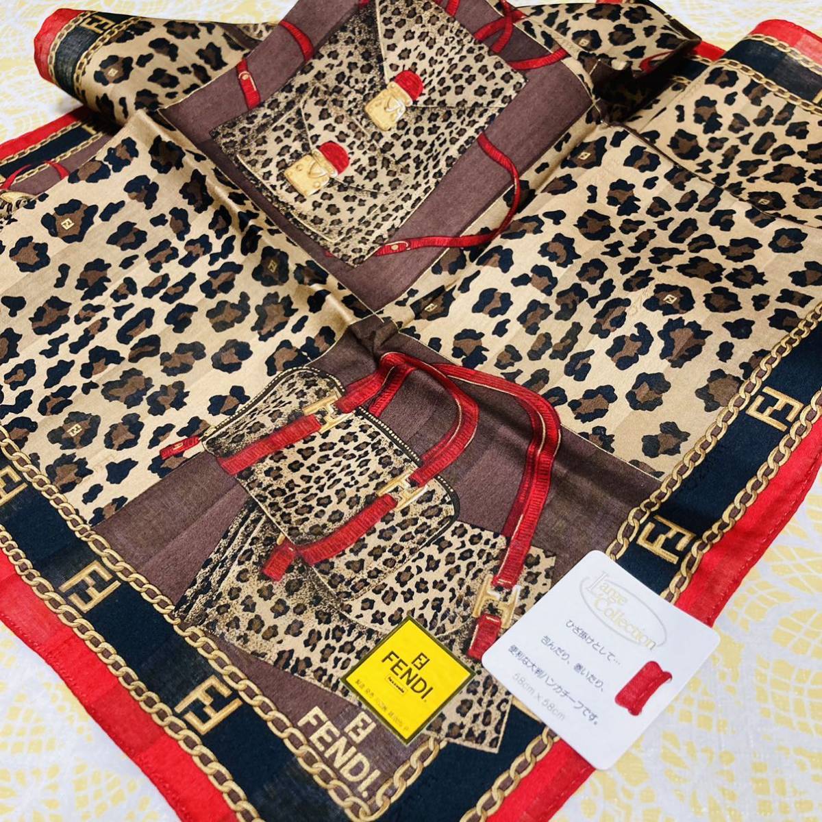 - 【人気柄】新品/FENDI/大判ハンカチ/正規品/フェンディ/未使用/即決あり/ズッカ柄/匿名発送/スカーフ/58cm/バック/リュック柄/ヒョウ柄/y赤