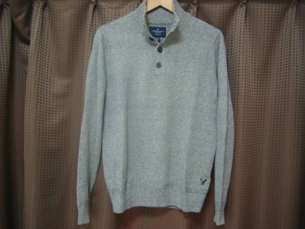 > ラスト! 最後の1点! 正規品 本物 新品 アメリカンイーグル ボタン 立ち襟 セーター AMERICAN EAGLE 上品 オシャレ 大人のグレー XS (S