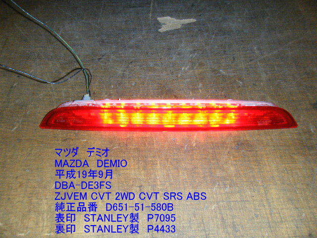 - ◆DE3FS マツダ デミオ ハイマウントストップランプ バックランプ ブレーキ D651-51-580B 純正 中古 即決 [10866]