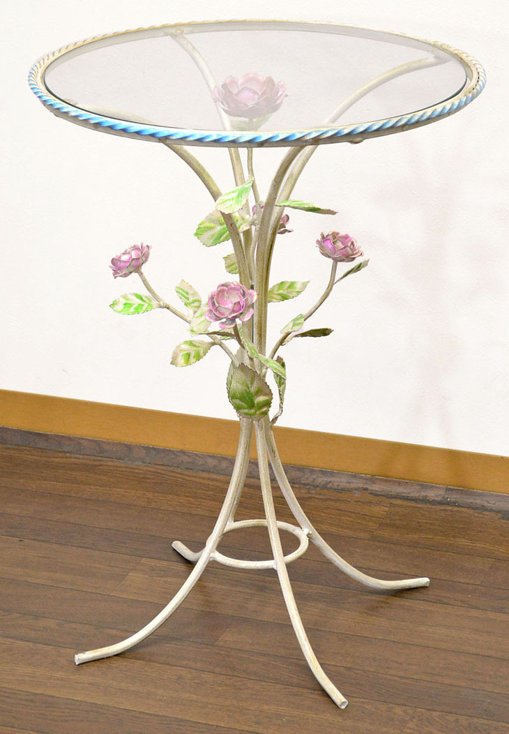 - イタリア製 薔薇 ガラステーブル アイアンローズ 丸 アンティーク調仕上げ 送料無料 花台 イタリア家具 サイドテーブル コーヒー [FB-T10]