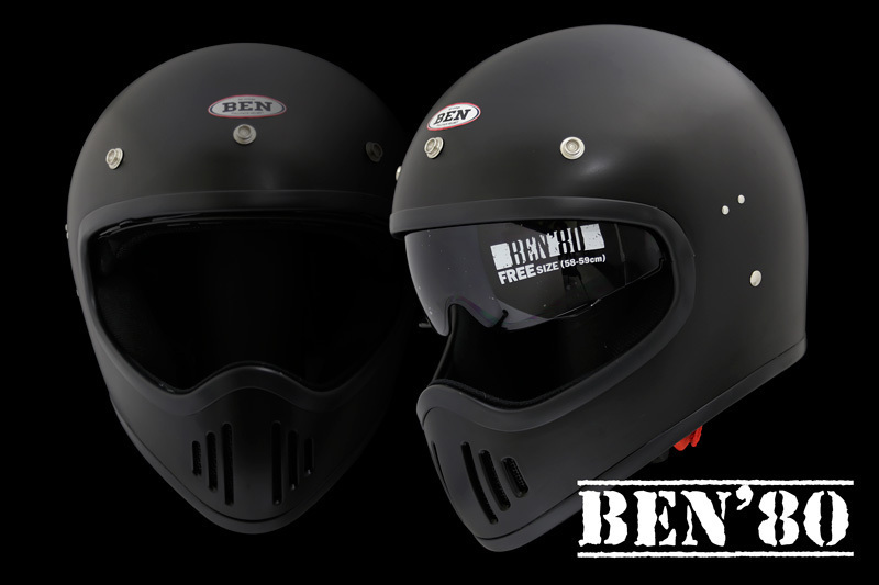 > フルフェイス ヘルメット Ben'80 マットブラック(インナーバイザー付き)FTR・TW・SR400・バンバン200・KATANA