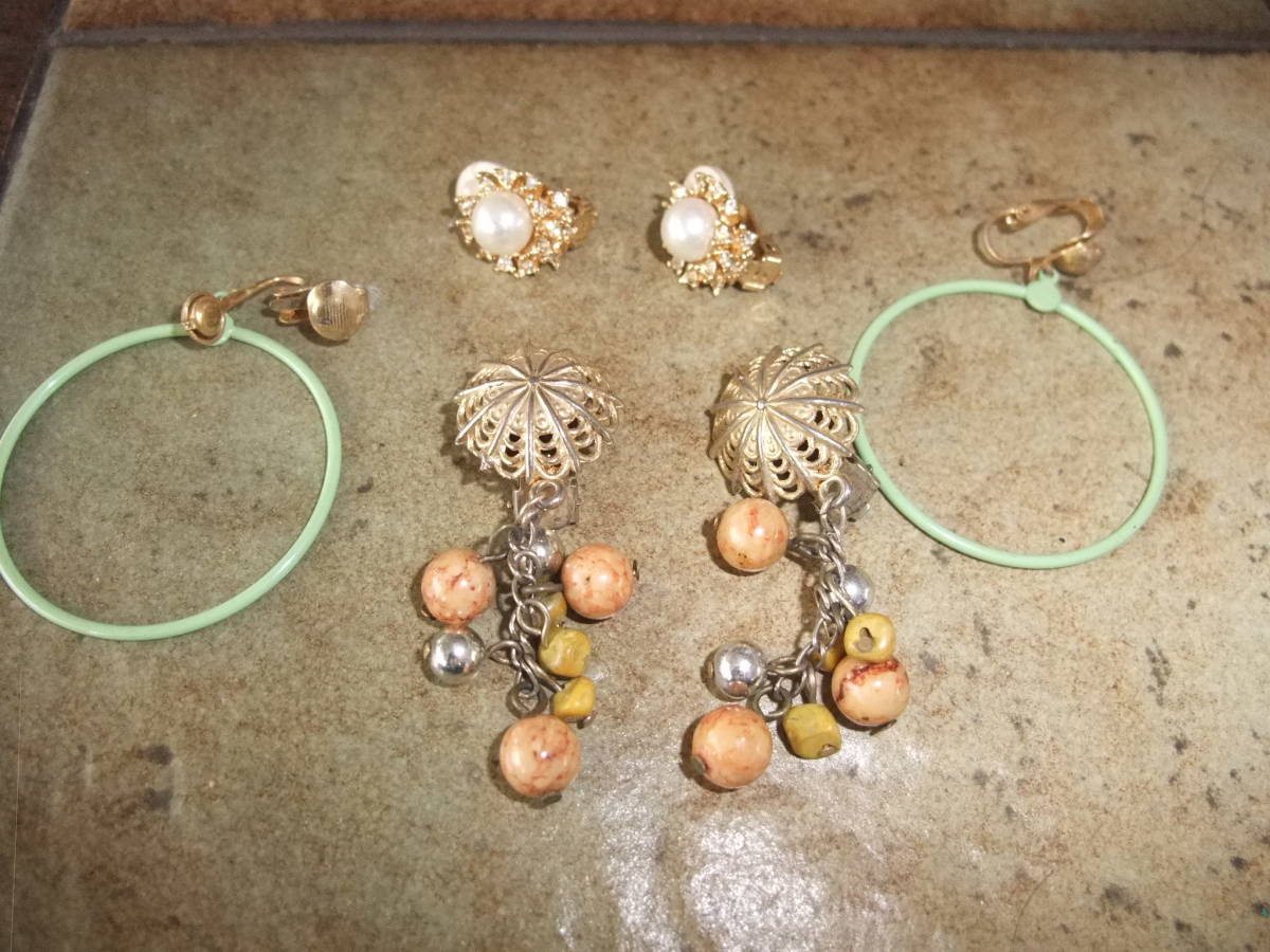 - イヤリング 3個 フープ&ラインストーン 未使用